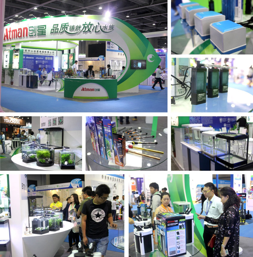 我們把本次參展看作是2015年產(chǎn)品研發(fā)的閱兵場(chǎng),展會(huì )上秀出了以“微水族”為概念的新一代配套式魚(yú)缸,新研發(fā)的節能水泵,氣泵(氣立方),新型加熱棒(猛將,金剛),新升級的AT缸外生化過(guò)濾桶系列等等。